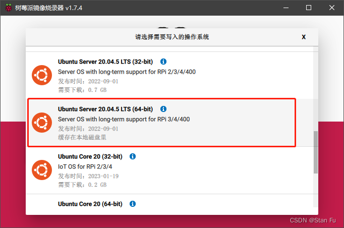 First, select the operating system, then find Ubuntu Server 20.04.5 version.