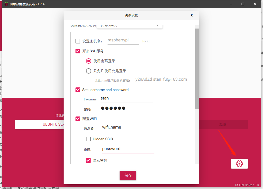 Next, configure the system initialization options: - "Enable SSH service" to enable SSH - "Set username" - "Configure Wi-Fi" (important): This will enable Wi-Fi and automatically connect to the provided network and password. Ensure this Wi-Fi network matches the one your current computer is connected to; otherwise, the rest of this tutorial won't work.